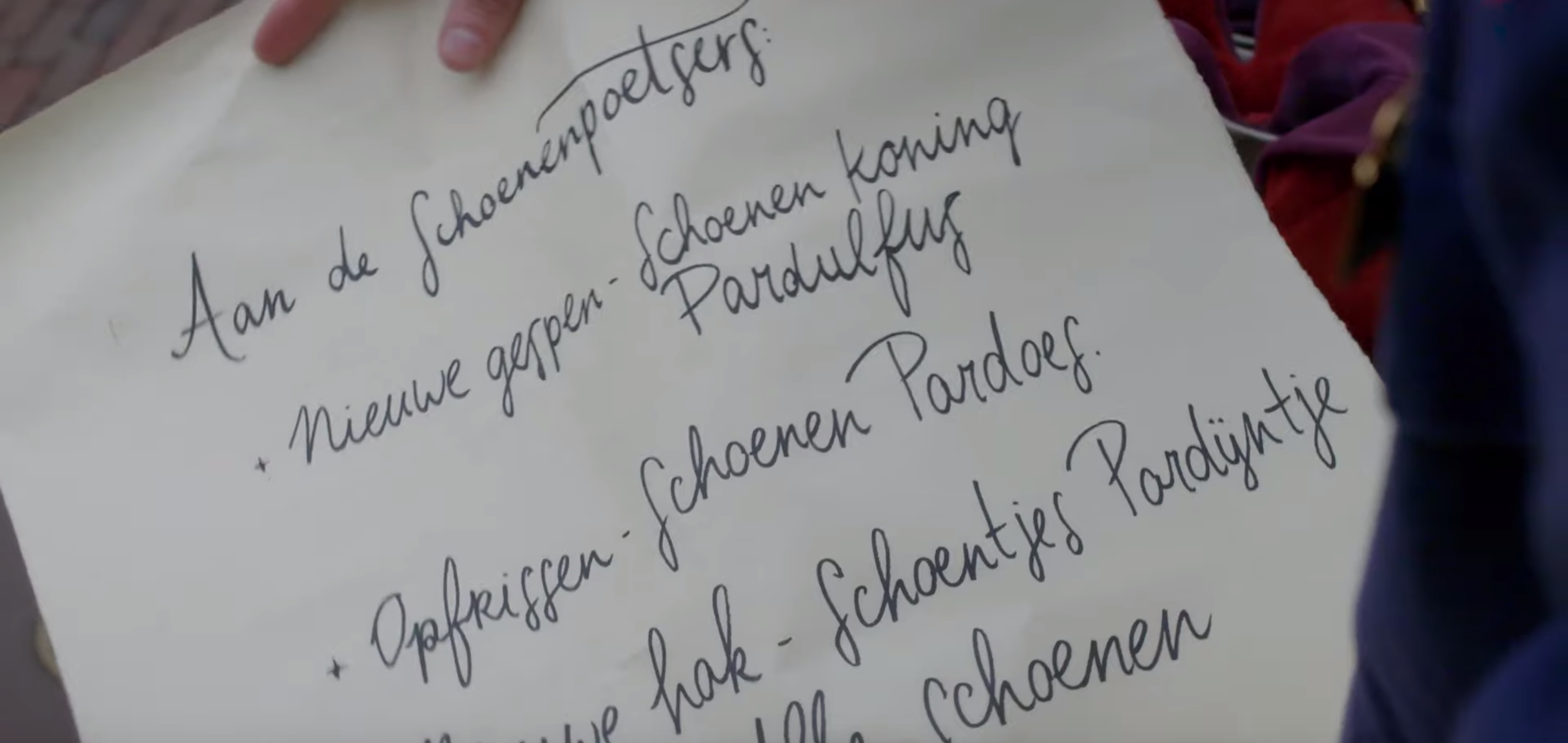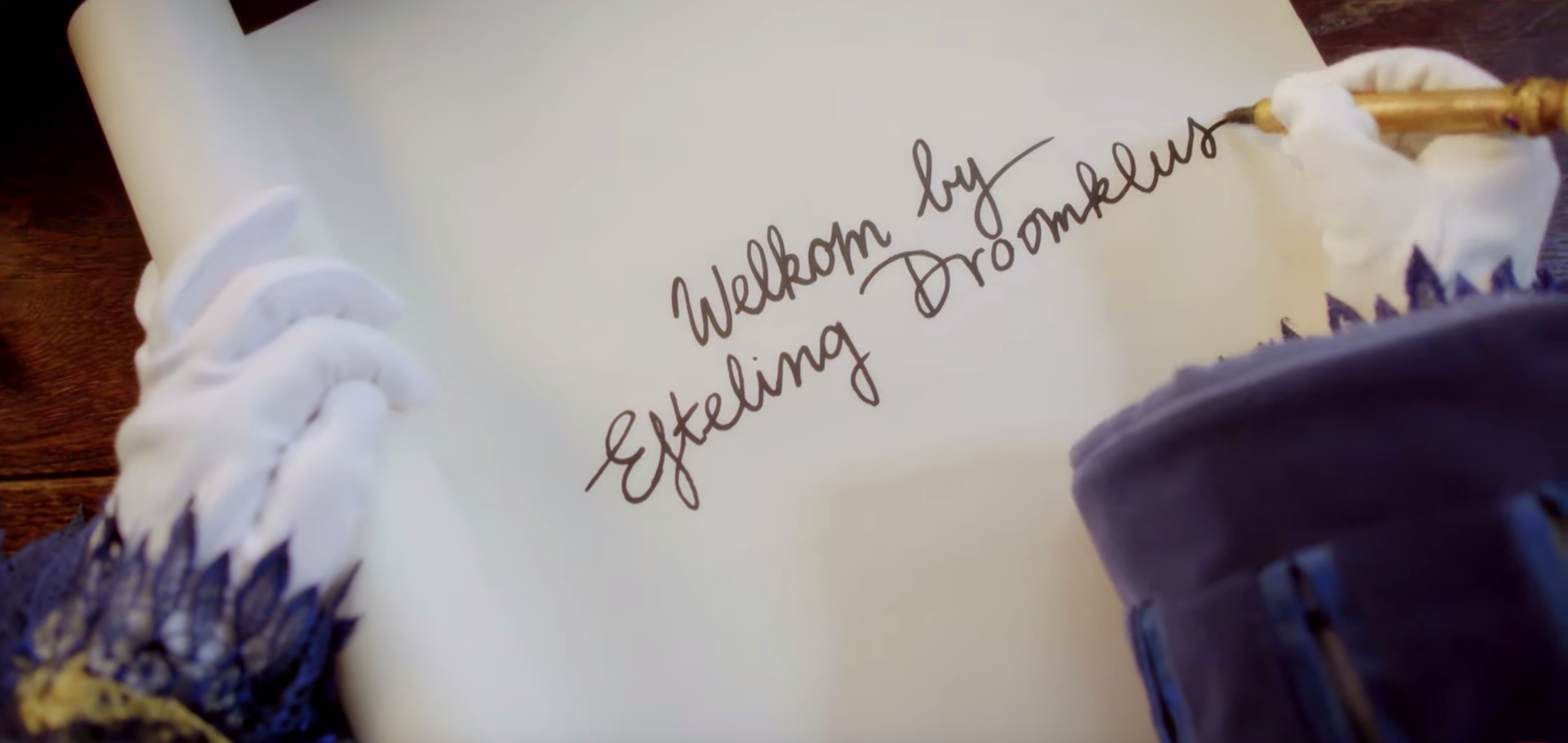 Op een dag stapte ik in een rol. De rol van O.J. Punctuel, secretaris protocollair van koning Pardulfus. Ik bedacht de copy en letterde de leader van de nieuwe serie ‘Efteling Droomklus’. Door de verschillende afleveringen heen zijn ook handgeschreven briefjes te zien vanuit andere rollen bedacht en geschreven: een boodschappenlijstje door Roodkapje en recepten door de bewoners uit het Land van Laaf.